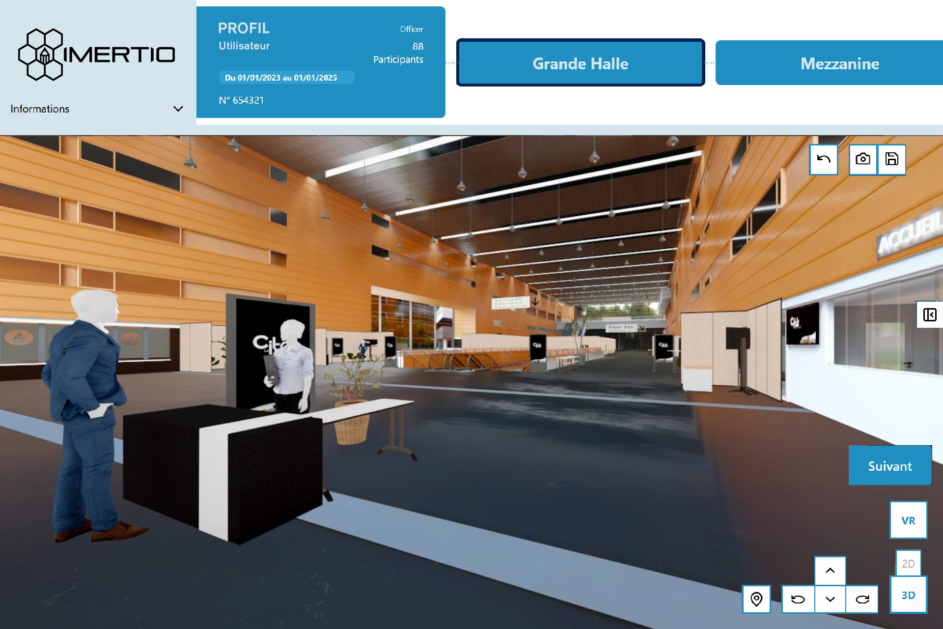 Imertio est un logiciel de co-création événementielle innovant qui permet d’imaginer, concevoir et organiser un événement de manière collaborative. Grâce à une interface intuitive, les utilisateurs peuvent aménager leur espace sur un plan 2D, puis visualiser instantanément le résultat en 3D et en réalité virtuelle (VR), offrant ainsi une immersion réaliste et une prise de décision facilitée.