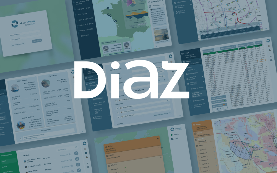 Diaz est un logiciel de gestion de projets et de base de données scientifiques dédié aux expéditions maritimes. Il permet de centraliser la préparation et la planification des missions, tout en assurant un suivi en mer avec monitoring des tâches et acquisition GPS en temps réel. L’outil intègre également une correction automatique des données et une aide à la rédaction de comptes rendus générés directement en PDF, optimisant ainsi le flux de travail des scientifiques, du terrain jusqu’à l’analyse finale.